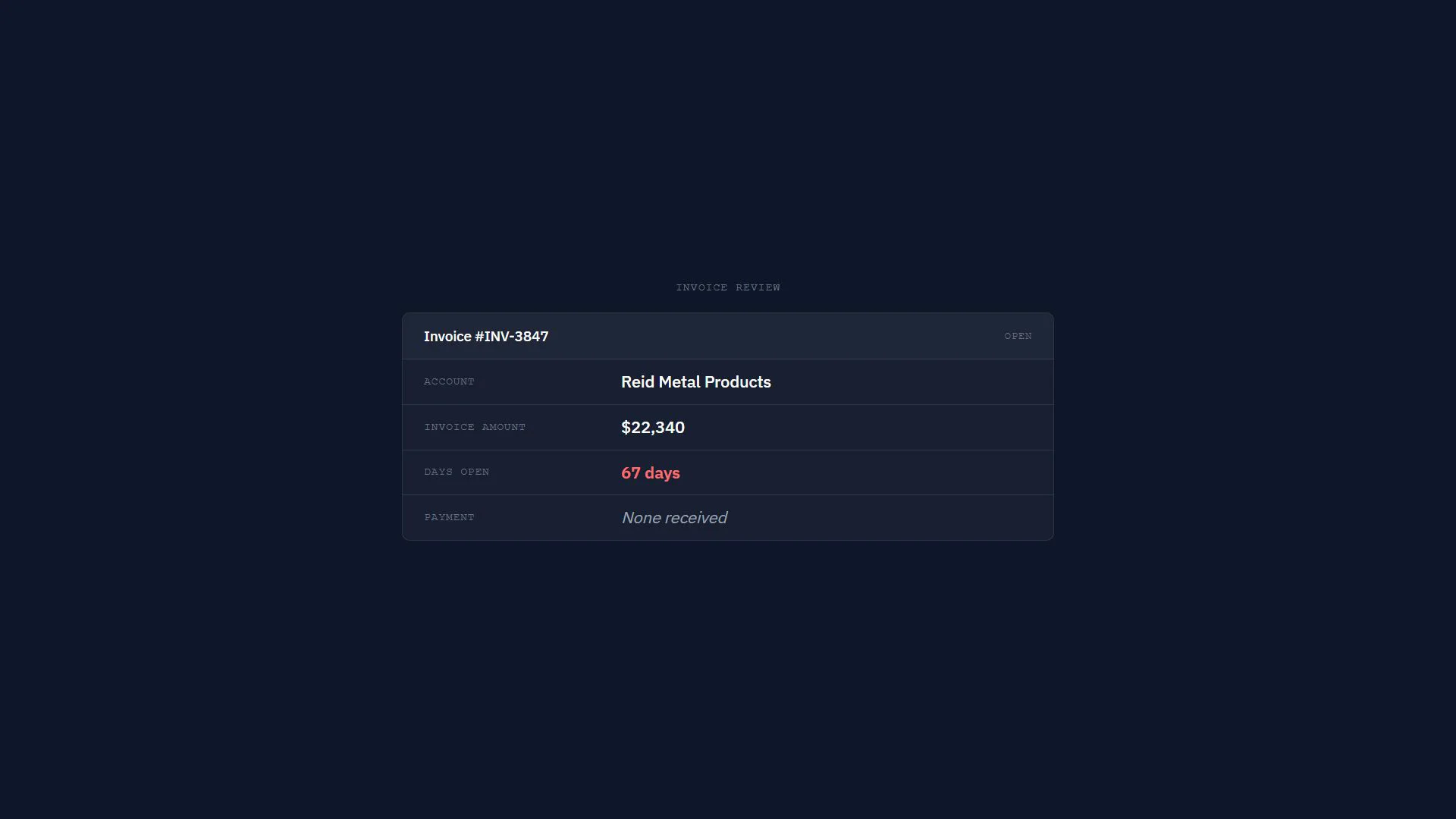 Every output is reviewed by the founder before it goes back to you. You get clear invoice-by-invoice findings you can use internally, share with your team, or bring into a collections conversation with a customer.